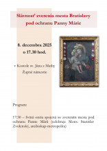 Bratislavský arcibiskup metropolita Mons. Stanislav Zvolenský zverí v pondelok na Slávnosť Nepoškvrneného počatia Panny Márie Bratislavu Panne Márii. Deje sa tak každý rok na záver svätej omše so začiatkom o 17:30, ktorú celebruje v Kostole sv. Jána z Mathy (Trojička) v Bratislave.